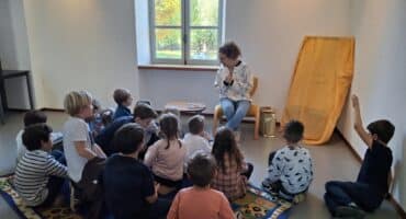 Cette semaine la classe de CE1/CE2 est allée à la médiathèque pour une lecture créative autour de la pomme.