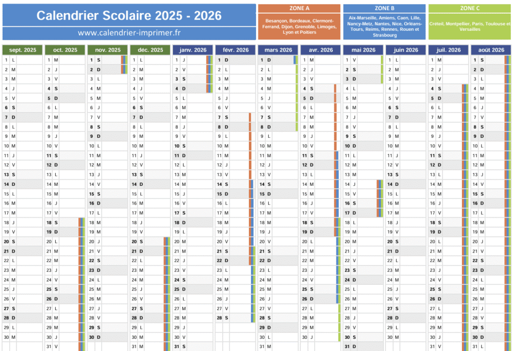 Vous pouvez consulter le calendrier scolaire 2025-2026 ci-dessous.