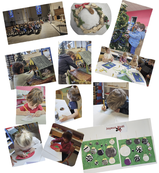 Le mois de Décembre commence avec la période de l’Avent. On se prépare à fêter Noël, on décore nous-même la classe et on fabrique des bricolages pour exercer nos petites mains, notre logique et notre créativité.